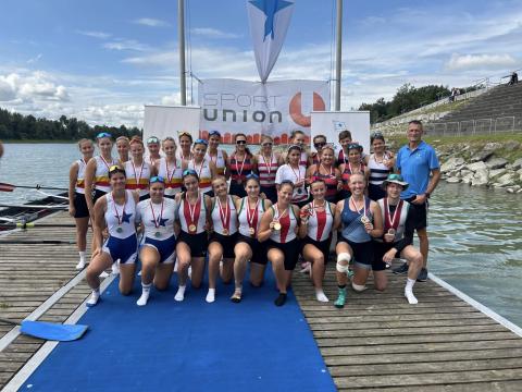 Kaum hatten die internationalen Spitzensportler*innen die Regattastrecke am 12.Juni 2022 geräumt, trafen auch schon die ersten Mastersruder*innen ein, um den wunderschönen Bleder See für ein paar Trainingseinheiten zu nutzen. So auch Mirta Buchinger-Cvar und Laura Piontek-Bakic, die die Zeit zwischen den Regatten nutzten, um mit ihrem Trainer, Ararm Lemmerer, an ihrer Technik zu feilen, bevor es am Donnerstag wieder mit den Wettkämpfen losging.