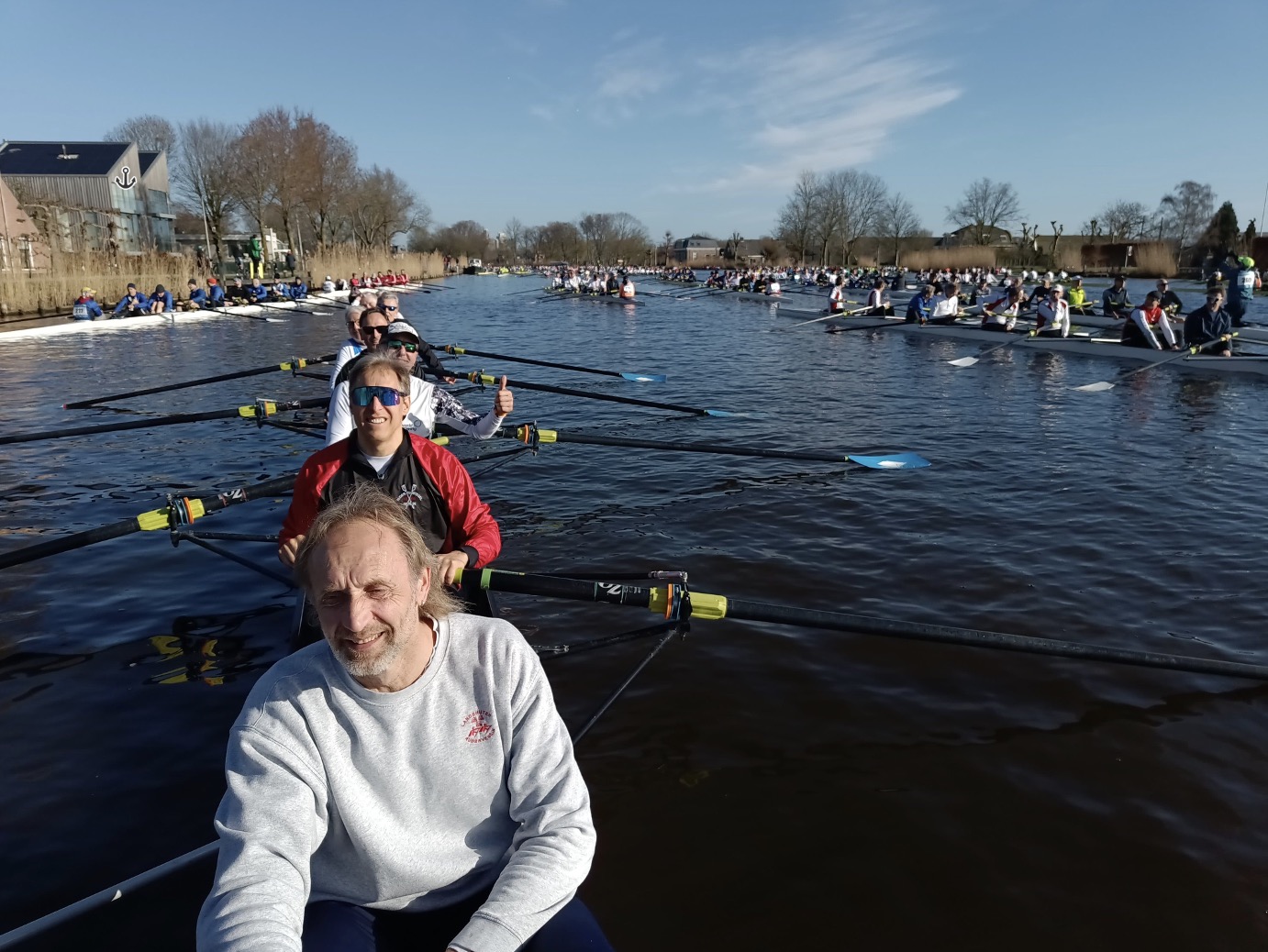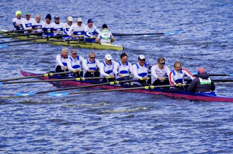 Der Start ist ein Erlebnis, da ich noch nie so viele Achter in Warteposition – alle 15 Sekunden ein Start- gesehen habe. Andreas durfte als einziger „ÖSI“ in einer deutschen RGM in Altersklasse Masters G starten, bei der unter anderem Olaf Klein (Schuhnummer 48 – Schlag) und Ansgar Wessling (ehem. Olympiasieger im Deutschland Achter) Teil des Teams waren. In der hochkarätig besetzten Regatta schafften wir den dritten Platz hinter RGM aus US/UK/NL bzw. einer US-Crew - wenngleich wir beim Sprint und bei den 5.000 m an zweiter Stelle lagen.